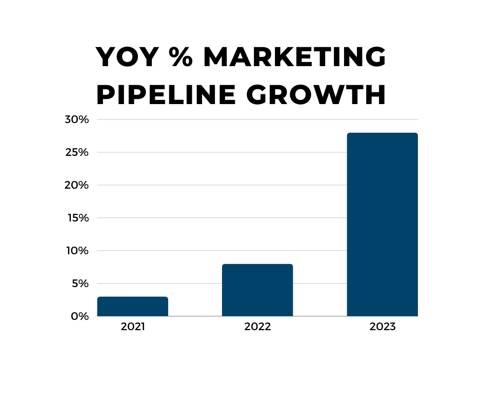- Improve marketing pipeline growth 100% from 2022 to 2023 (8% to 16%)